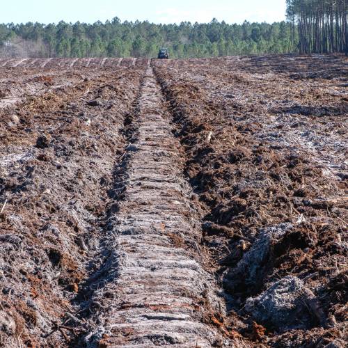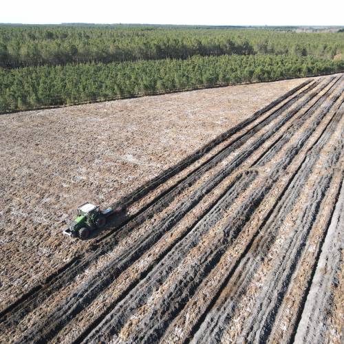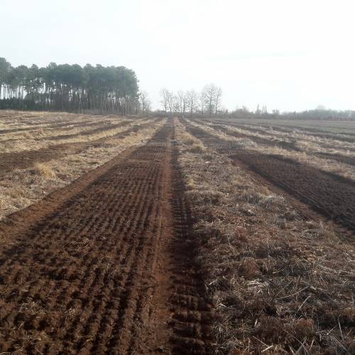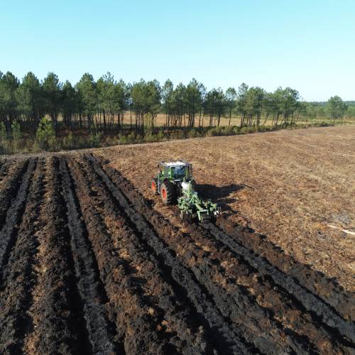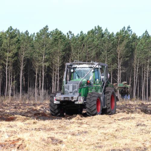 The ploughed soil is then crumbled prior to planting, with a Landes roller or forestry discs.